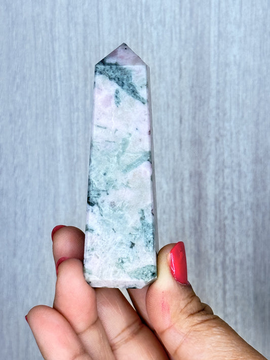 Ruby in Fuchsite Obelisk – UV Reactive Crystal Tower | Handpicked Natural Corundum in Green Fuchsite