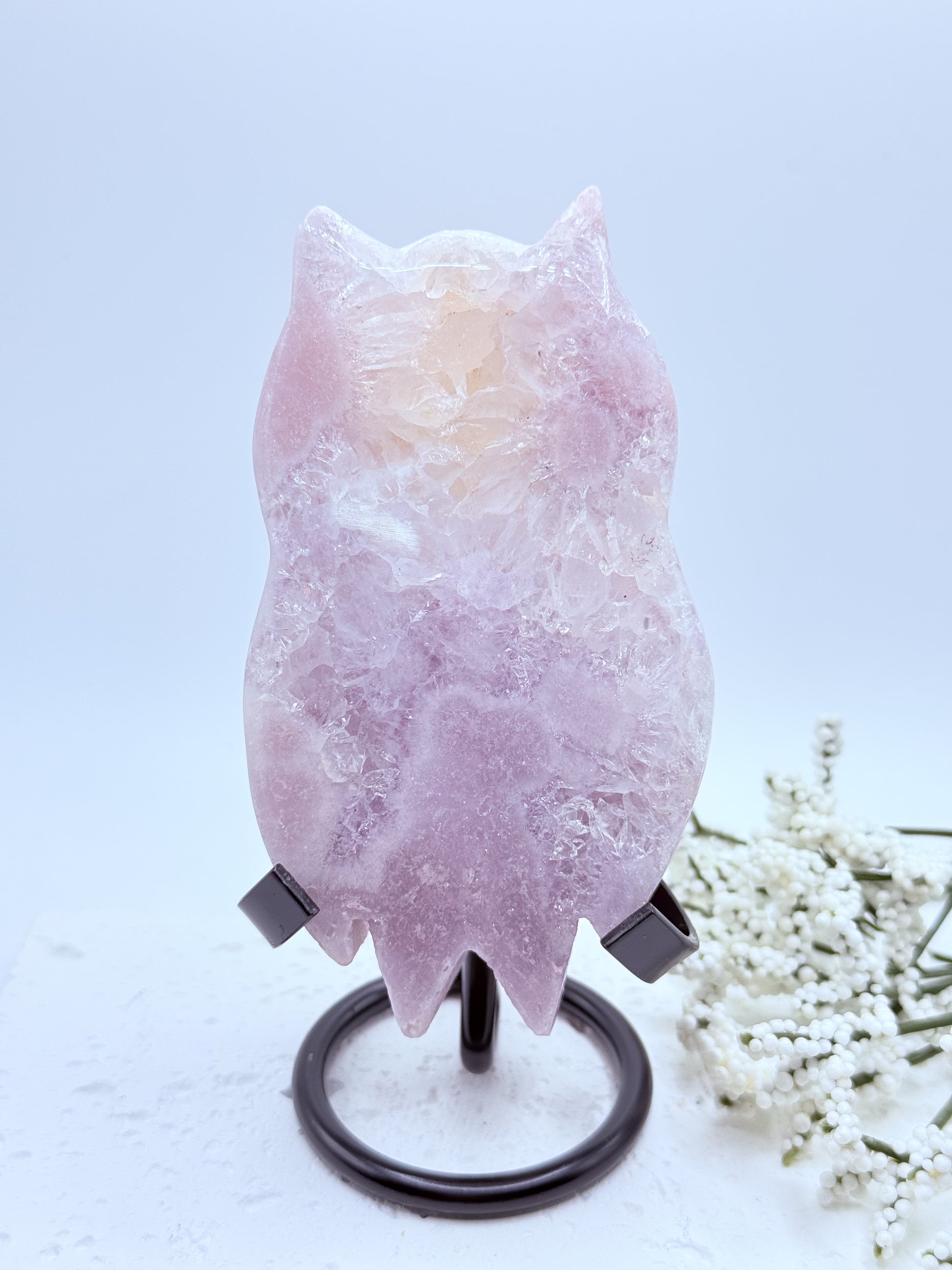 This little owl is a gem—literally! The amethyst druzy sparkles beautifully in the light, and the carving detail is impressive for its size.