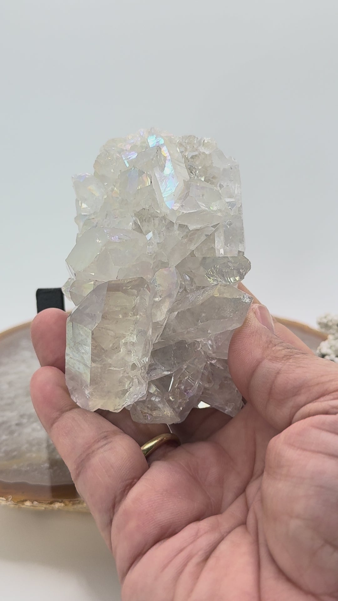 Aura Clear Quartz Cluster – Iridescent Crystal for Light & Energy
