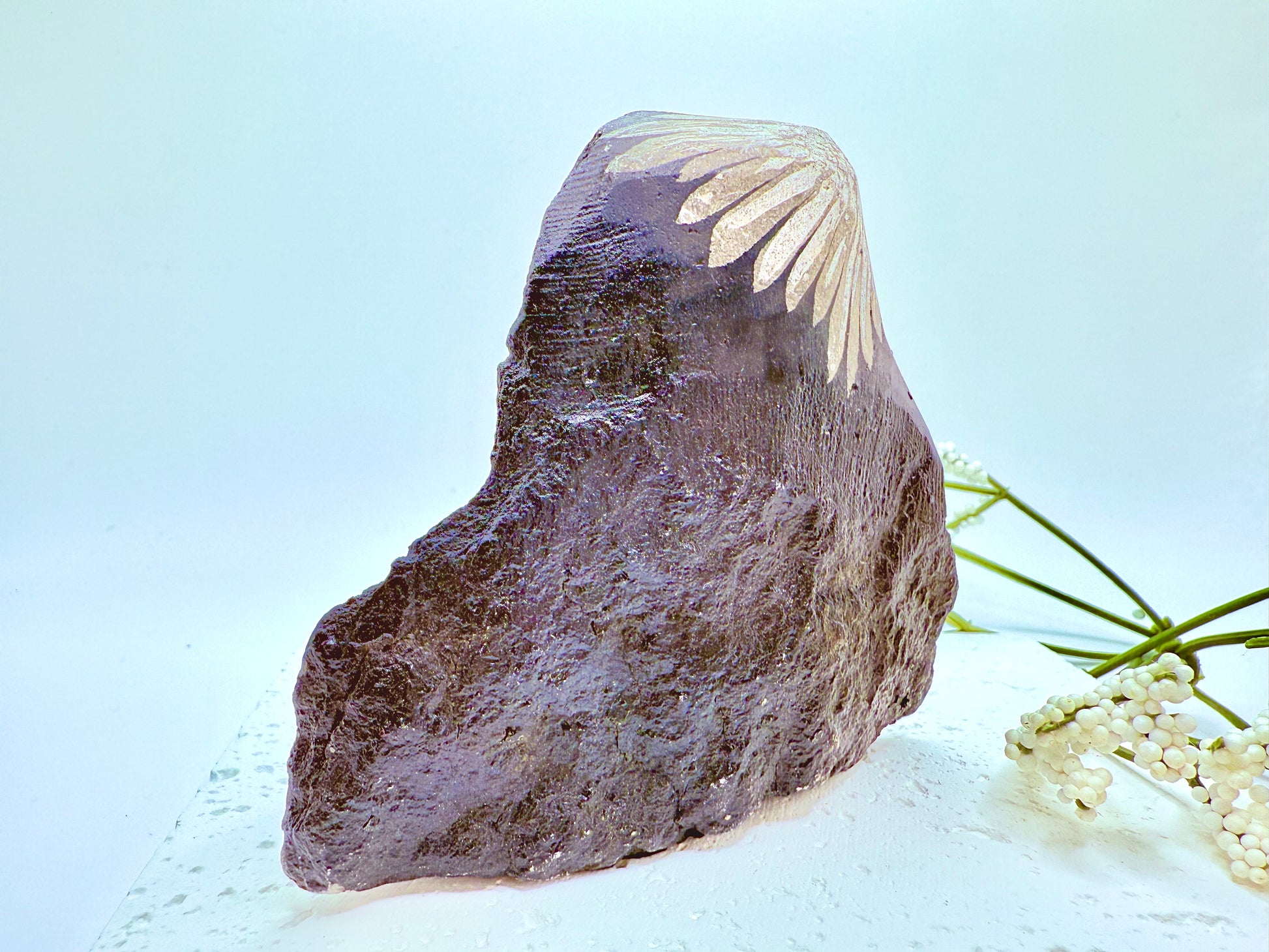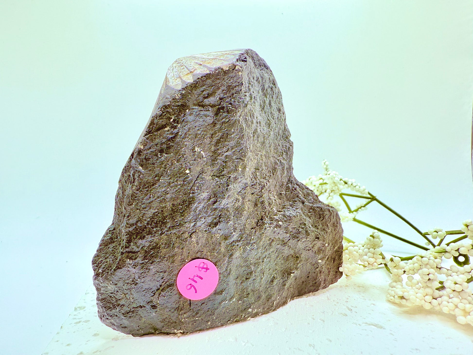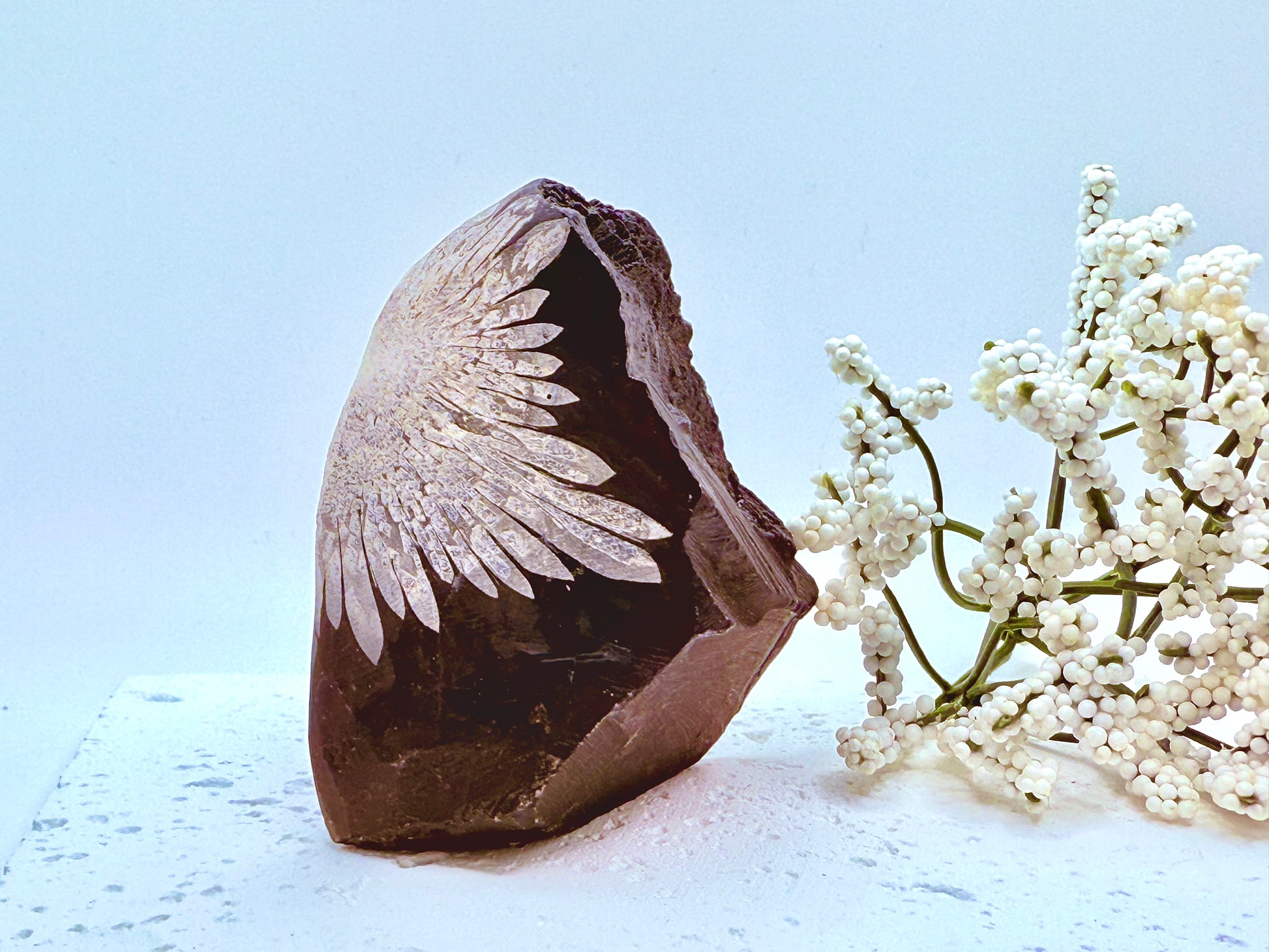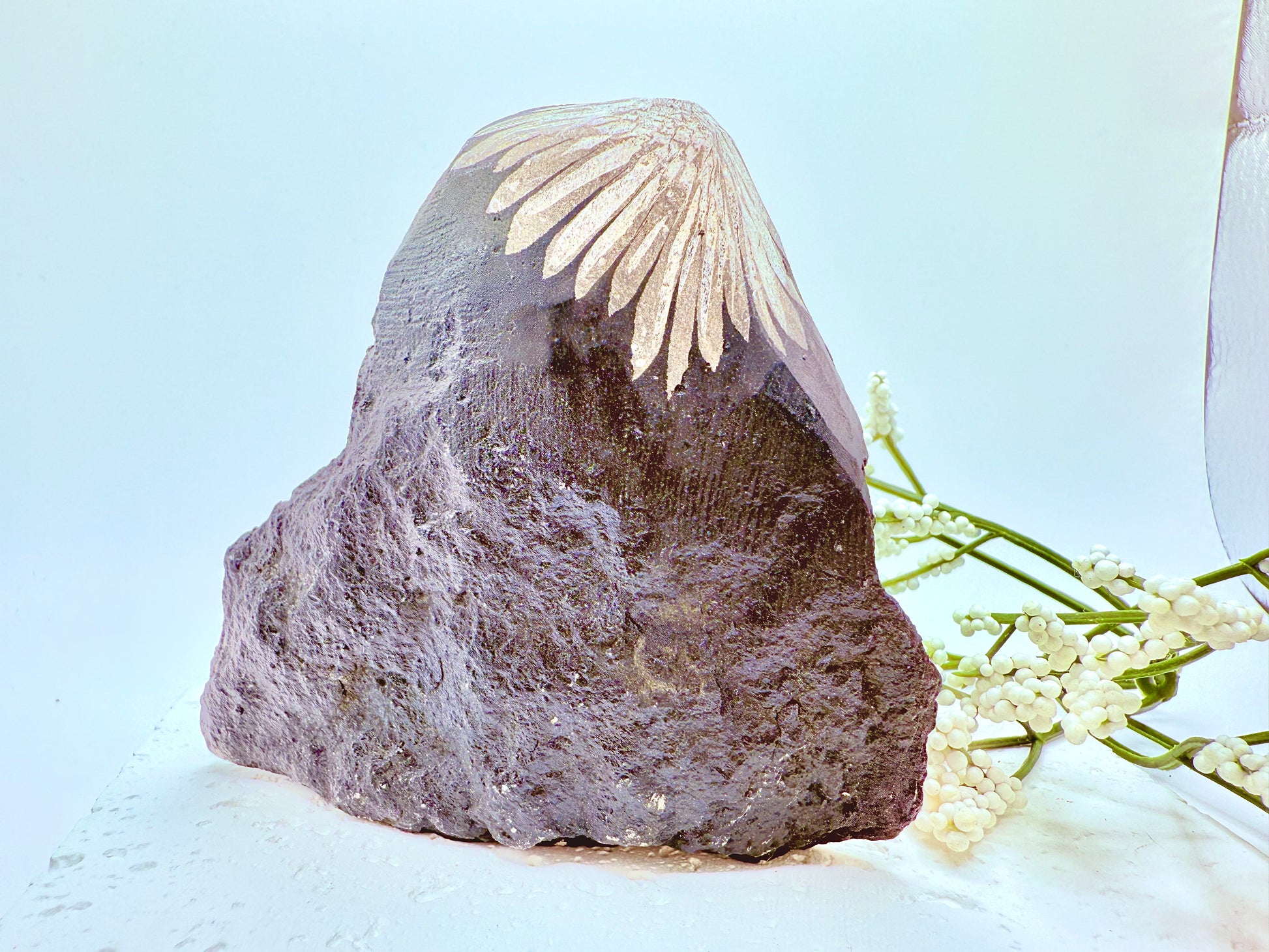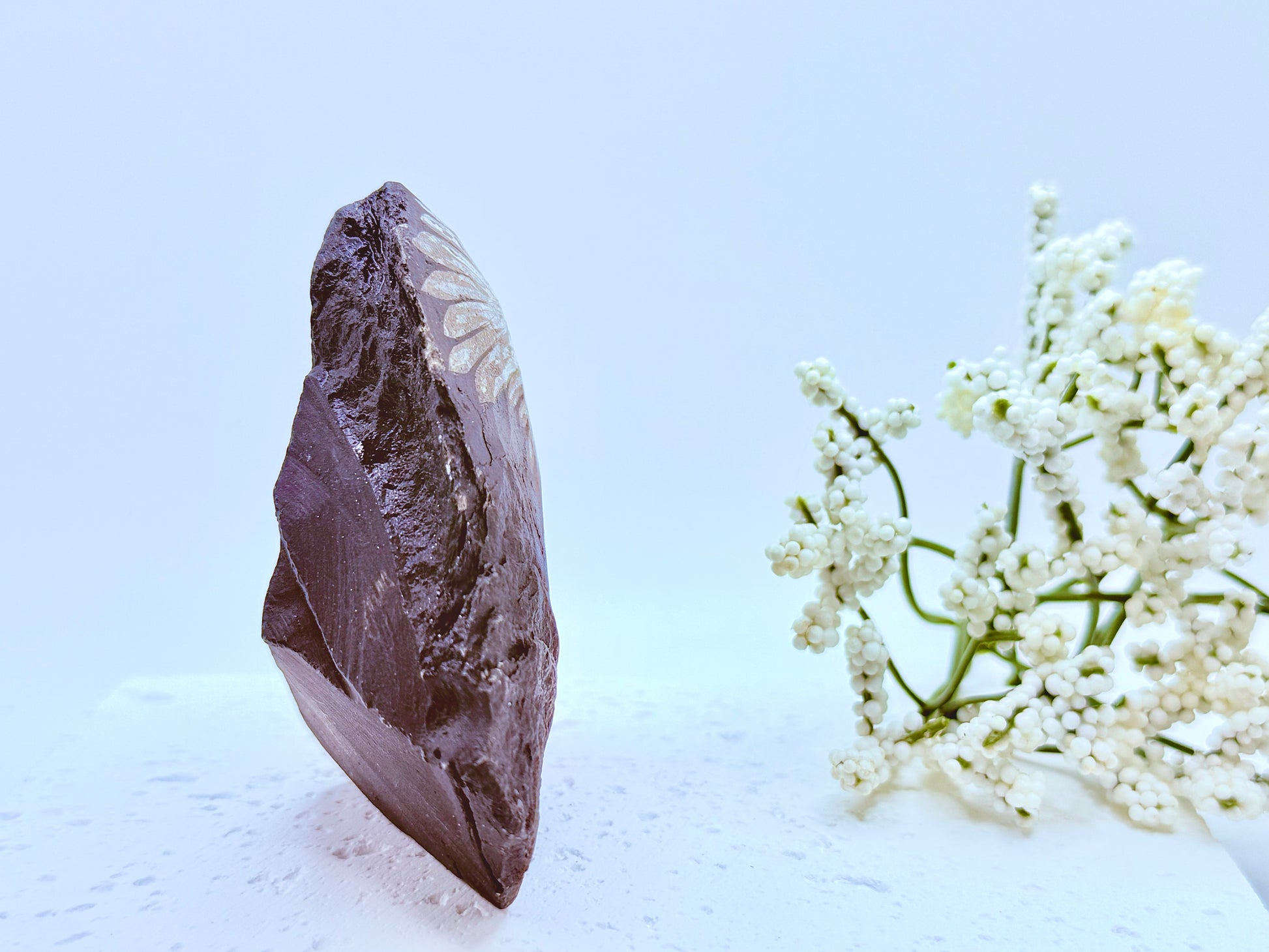 This chrysanthemum stone’s white floral patterns pop against its inky matrix. Its raw, earthy texture evokes ancient landscapes, adding a striking, natural vibe to my shelf’s eclectic mix.