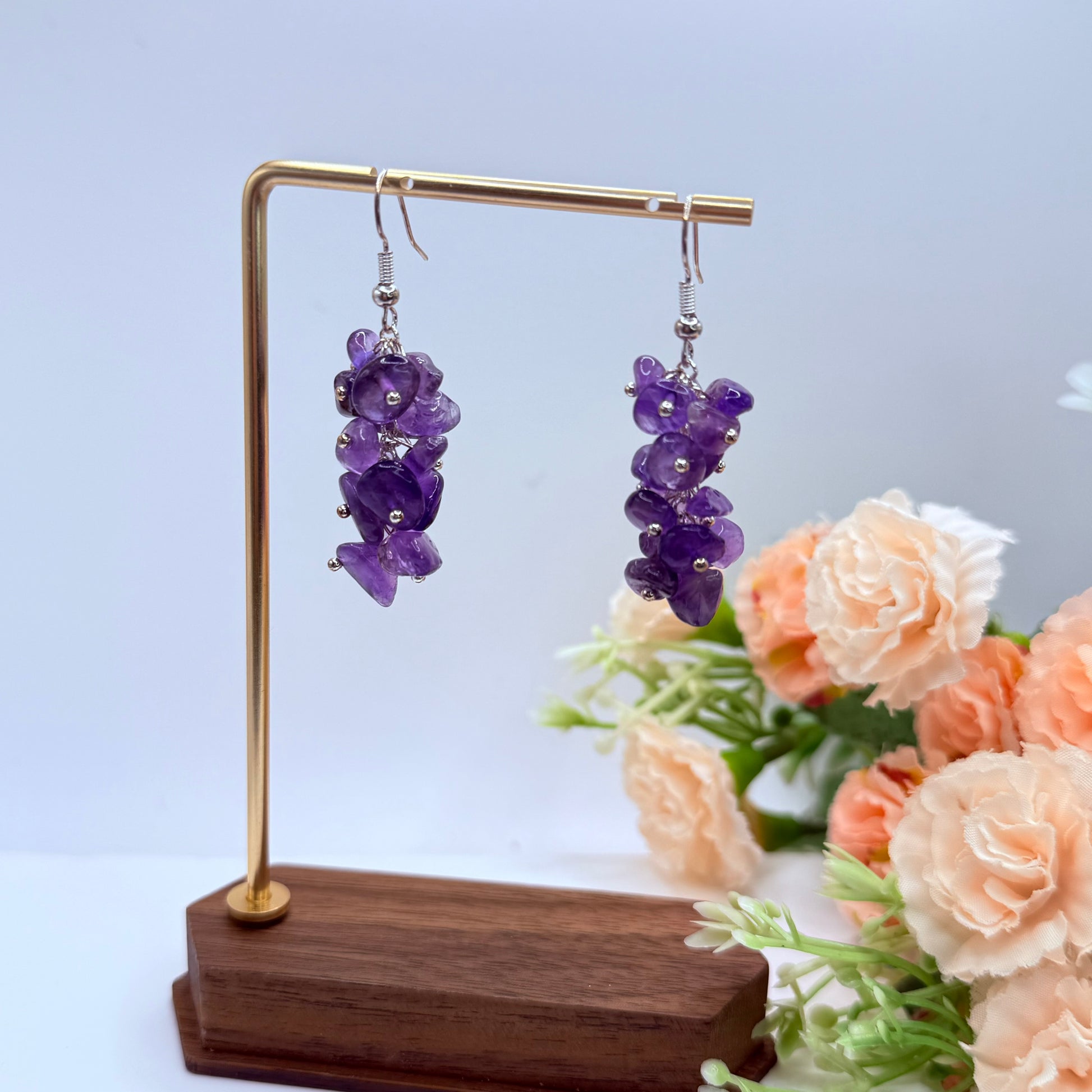 The variety of crystals in one bunch makes these earrings stand out. They're perfect for casual wear or adding a subtle sparkle to a boho look.