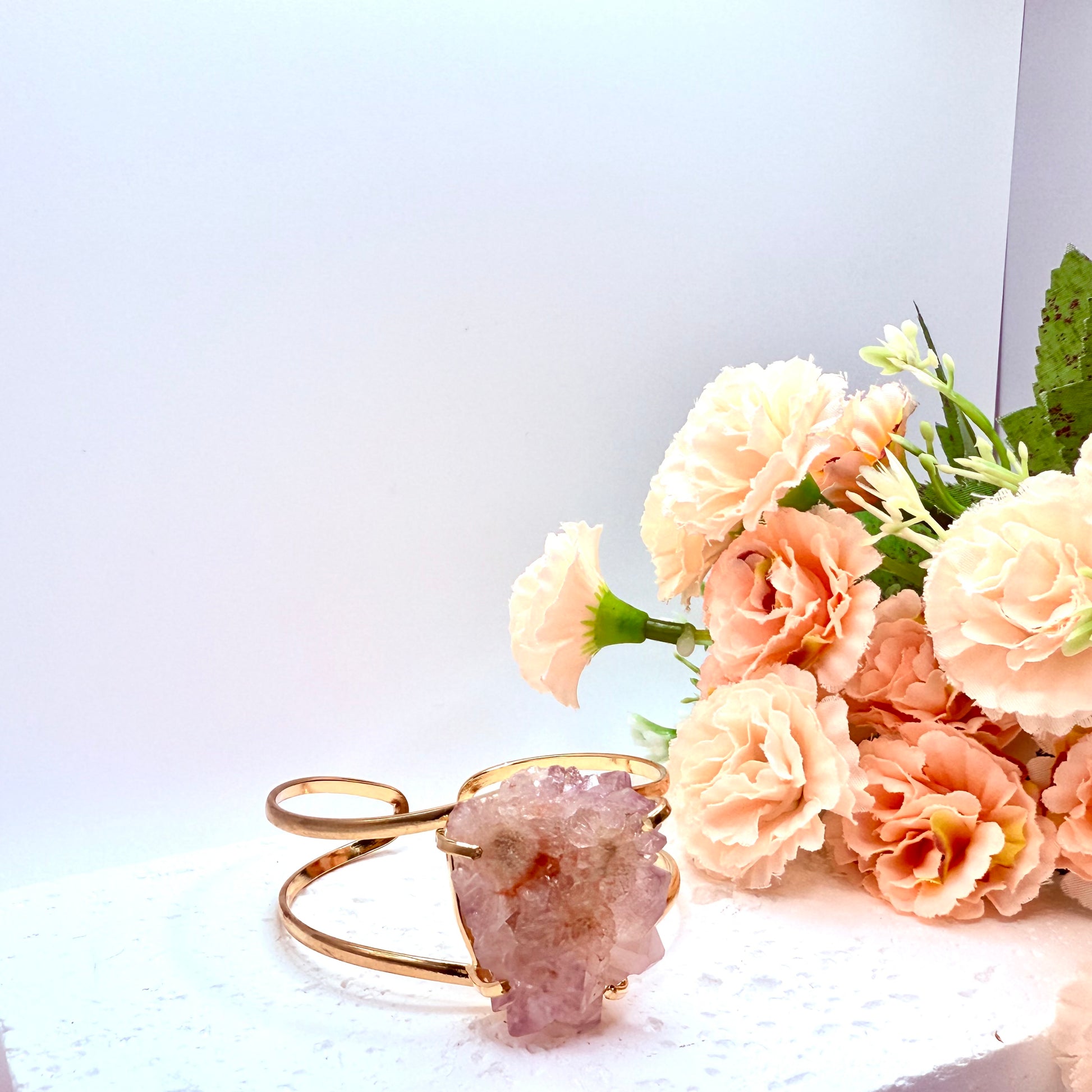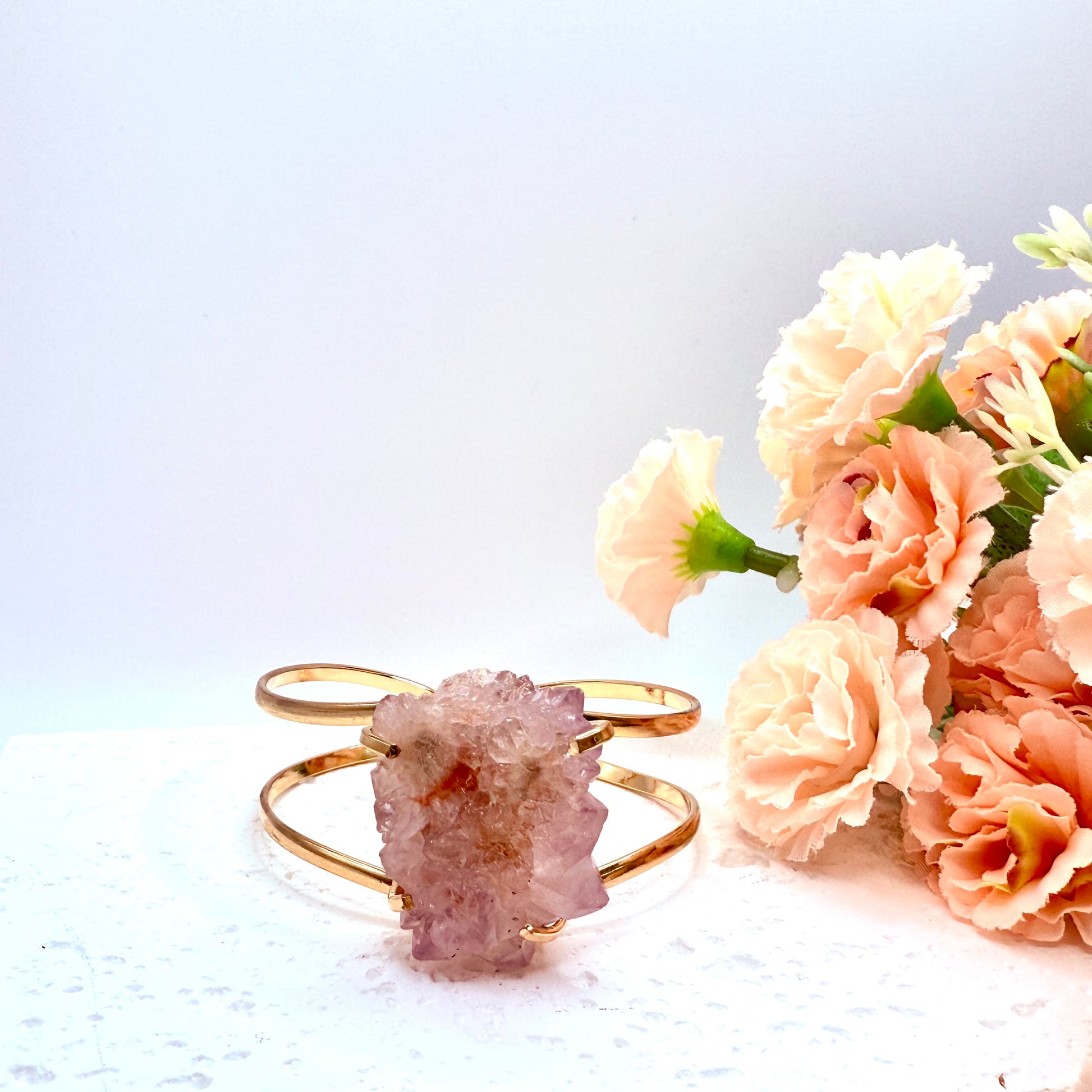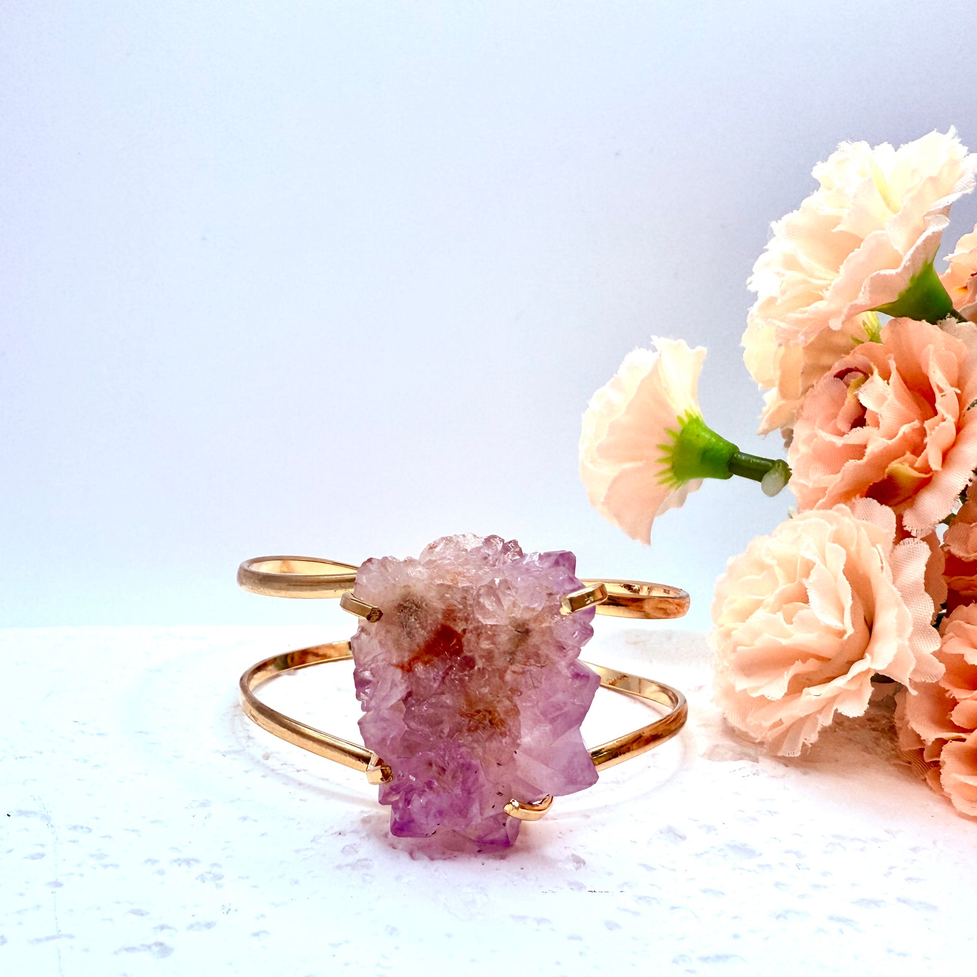 Soft pink amethyst clusters create a dreamy bracelet that wraps your wrist in gentle, heart-healing energy. Buy pink amethyst bracelet in Canada and discover how this rare crystal variety combines amethyst's clarity with rose quartz's loving vibration. Each handmade pink crystal bracelet features natural cluster formations that catch light like crystallized sunset clouds, making this piece both spiritually meaningful and visually stunning.