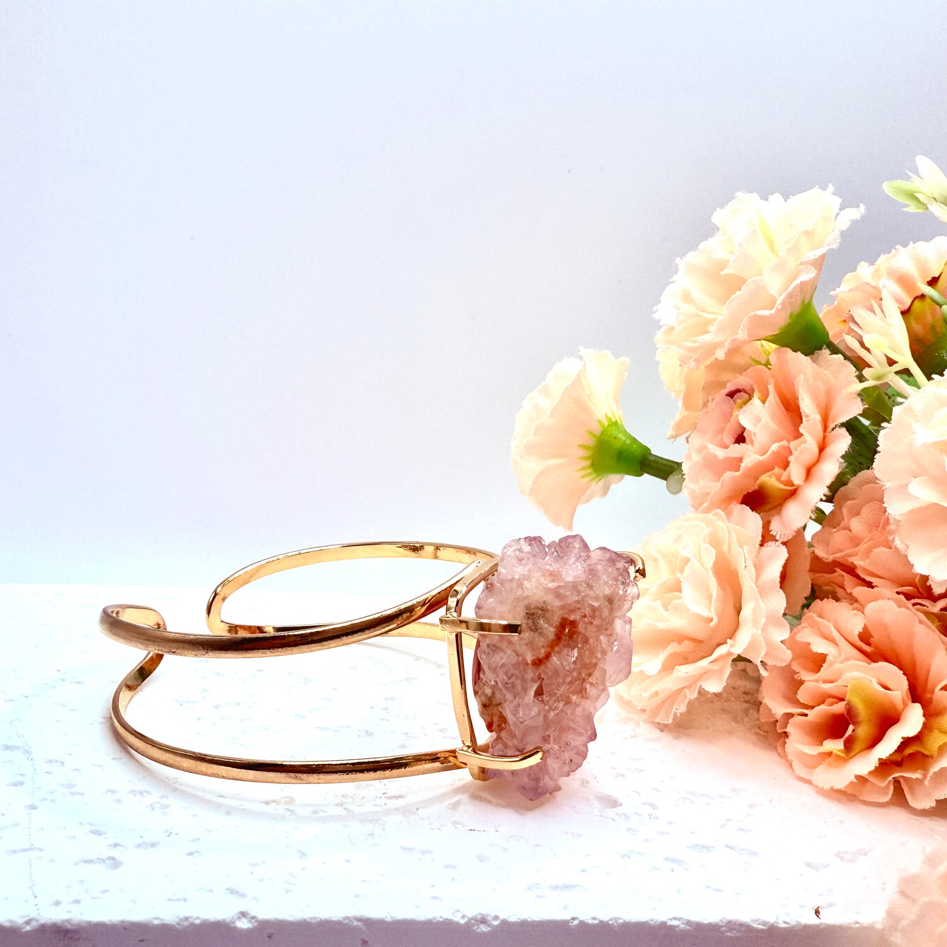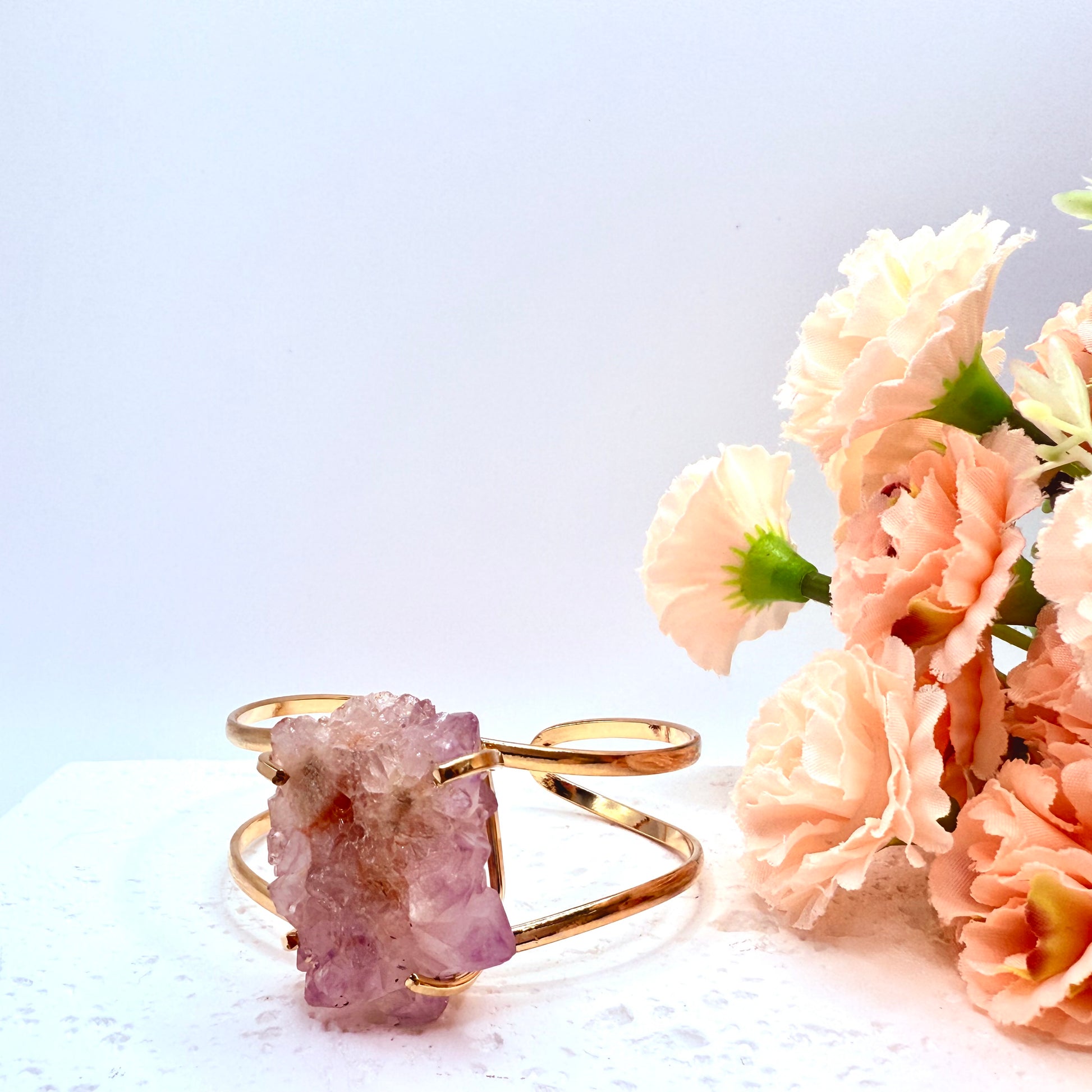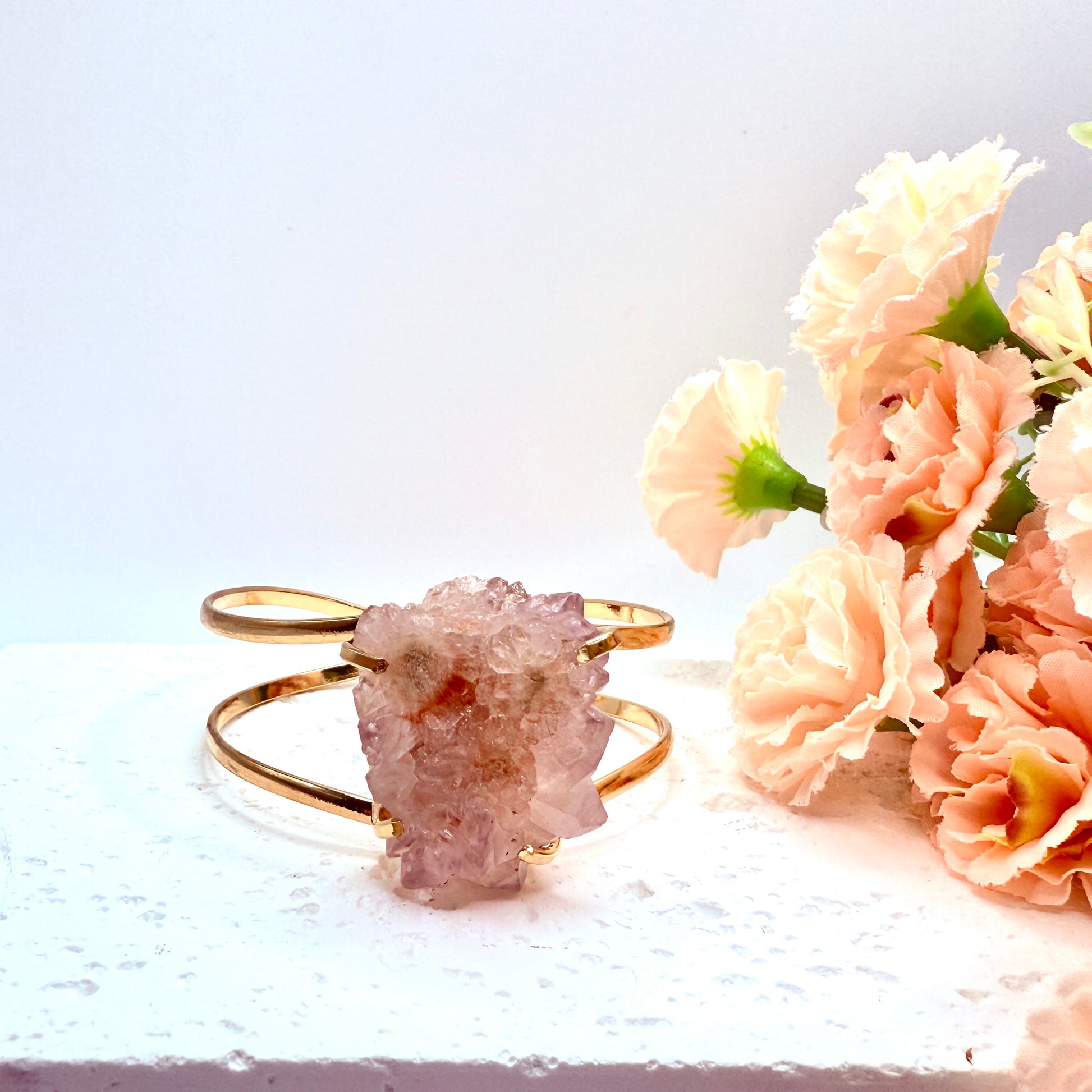Soft pink amethyst clusters create a dreamy bracelet that wraps your wrist in gentle, heart-healing energy. Buy pink amethyst bracelet in Canada and discover how this rare crystal variety combines amethyst's clarity with rose quartz's loving vibration. Each handmade pink crystal bracelet features natural cluster formations that catch light like crystallized sunset clouds, making this piece both spiritually meaningful and visually stunning.