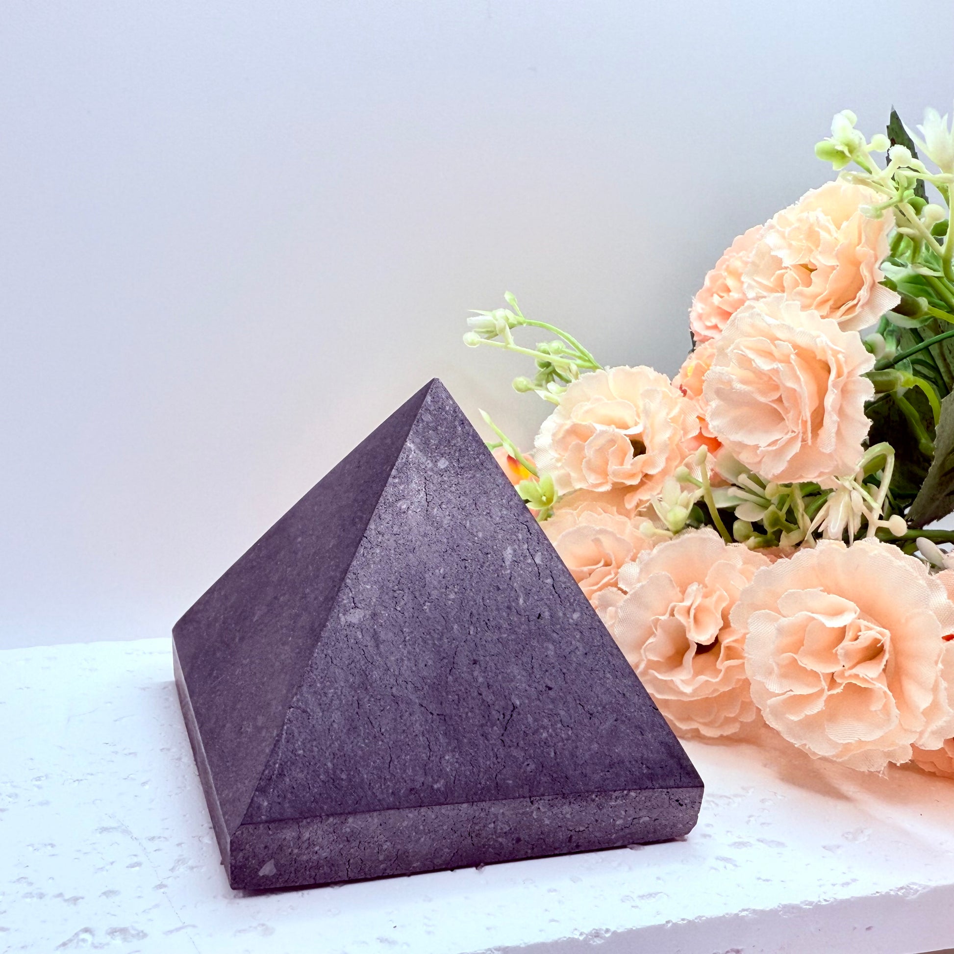 Ancient carbon transforms into modern protection with this powerful shungite pyramid that shields your space from electromagnetic chaos. The shungite crystal contains rare fullerenes that absorb and neutralize harmful EMF frequencies, creating a sanctuary of natural balance in our digital world. This shungite pyramid acts as your personal energy fortress, grounding scattered vibrations while the pyramid shape amplifies protective energy throughout your home. Crystal practitioners have discovered that shungite is one of nature's most powerful purifiers - a 2-billion-year-old gift from the earth.