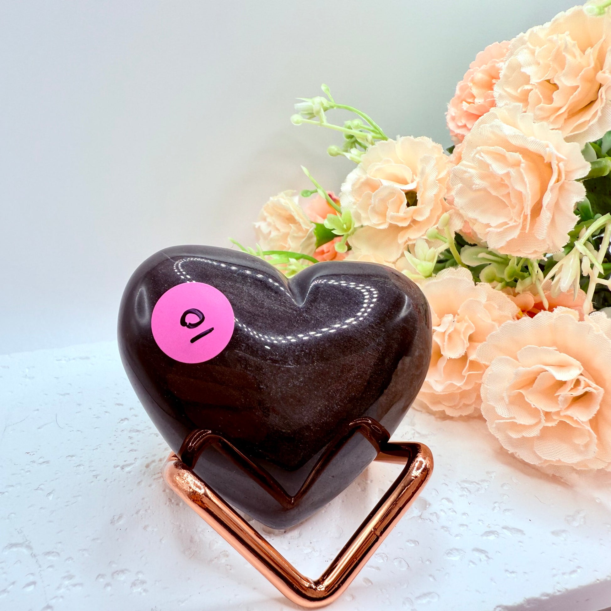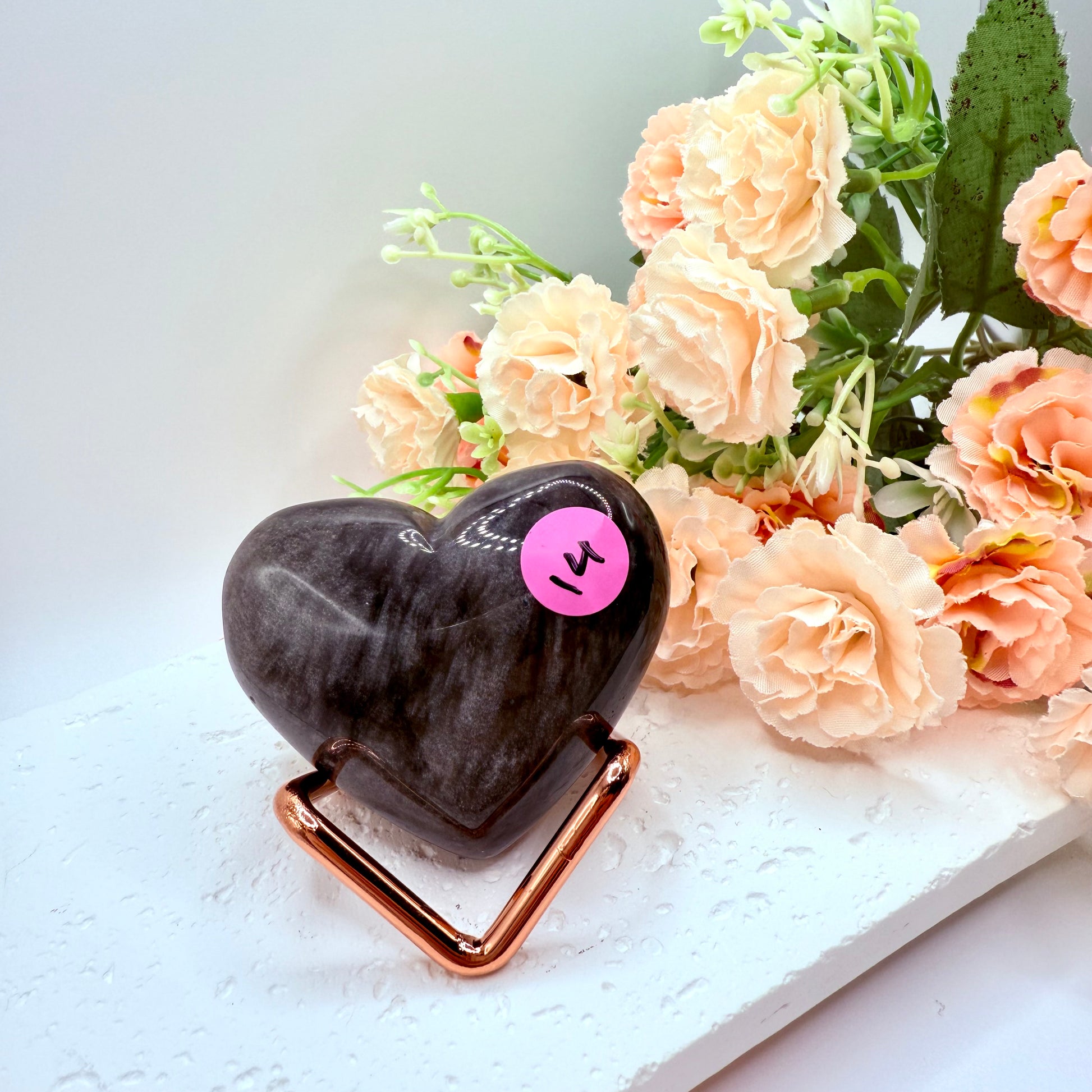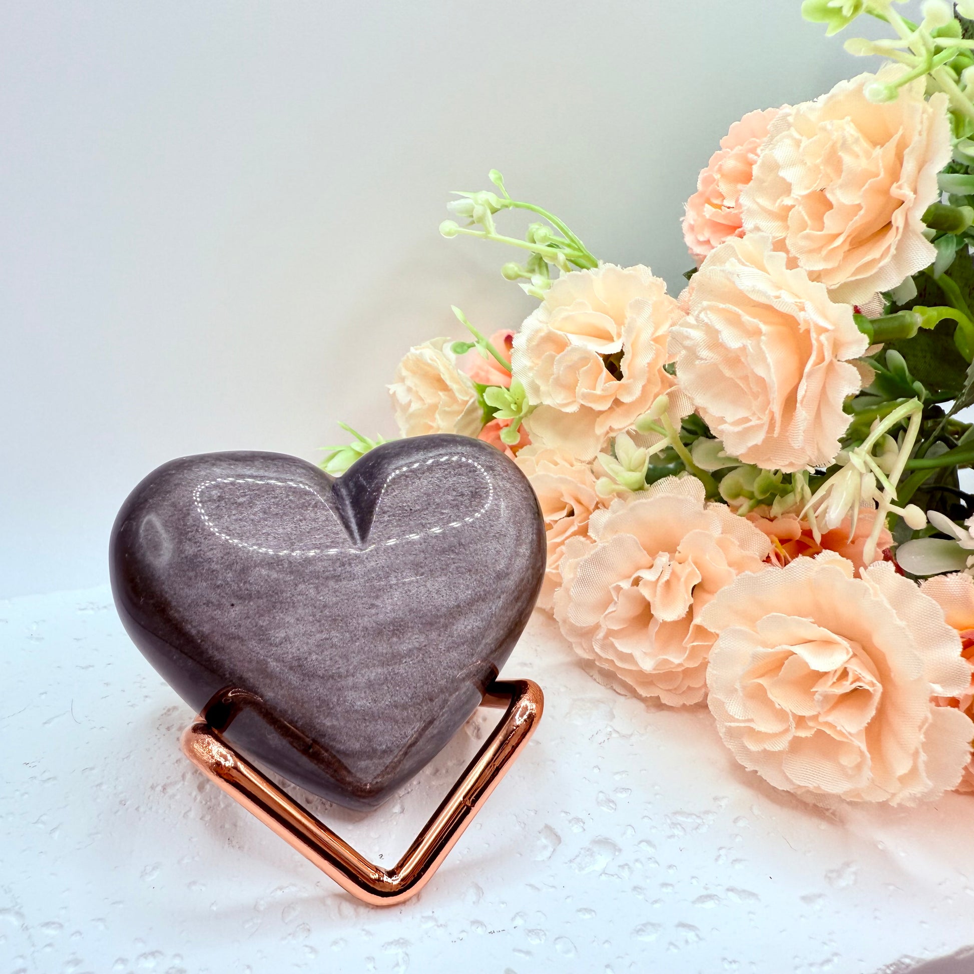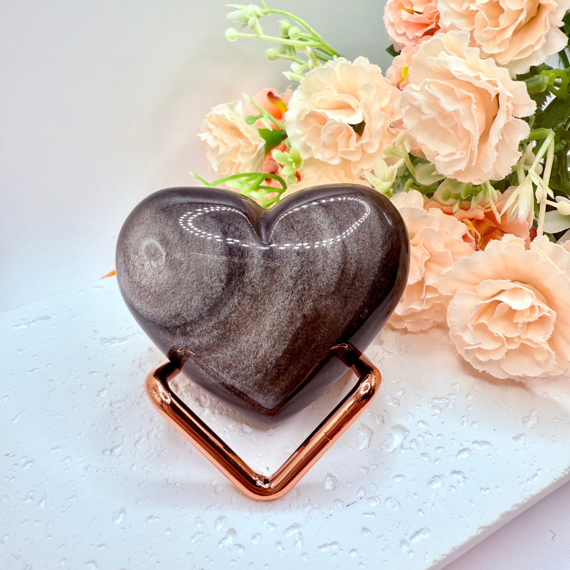 The silver sheen adds a magical touch to these obsidian hearts. They feel powerful, yet calming—great for emotional balance and inner strength.