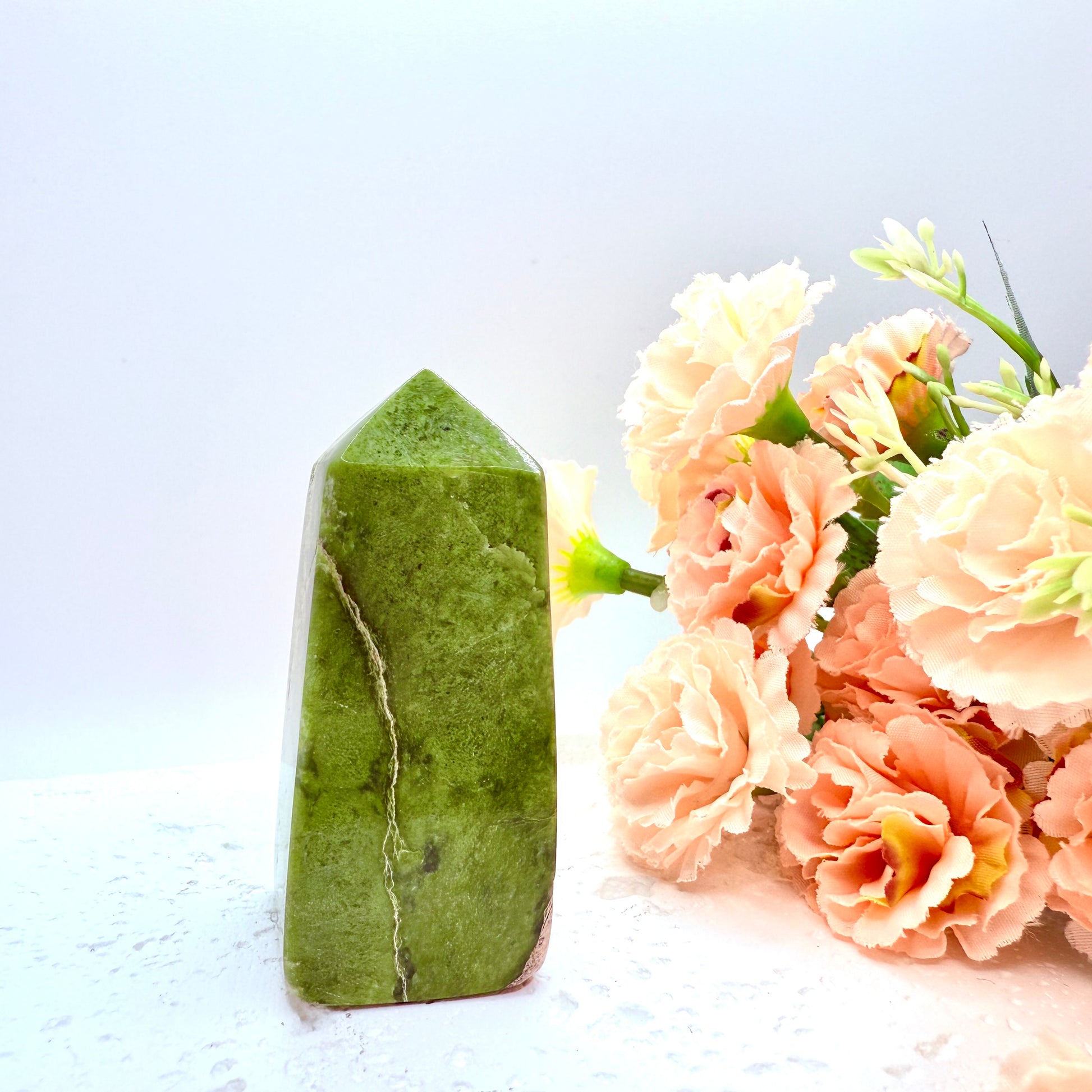 Rare and deeply soothing, these Trimolite Crystal Towers from Pakistan offer calming support through transitions. Trimolite encourages emotional release and peaceful clarity. Each trimolite crystal tower stands tall as a beacon of stillness—ideal for those healing from stress or seeking spiritual guidance with gentle strength.